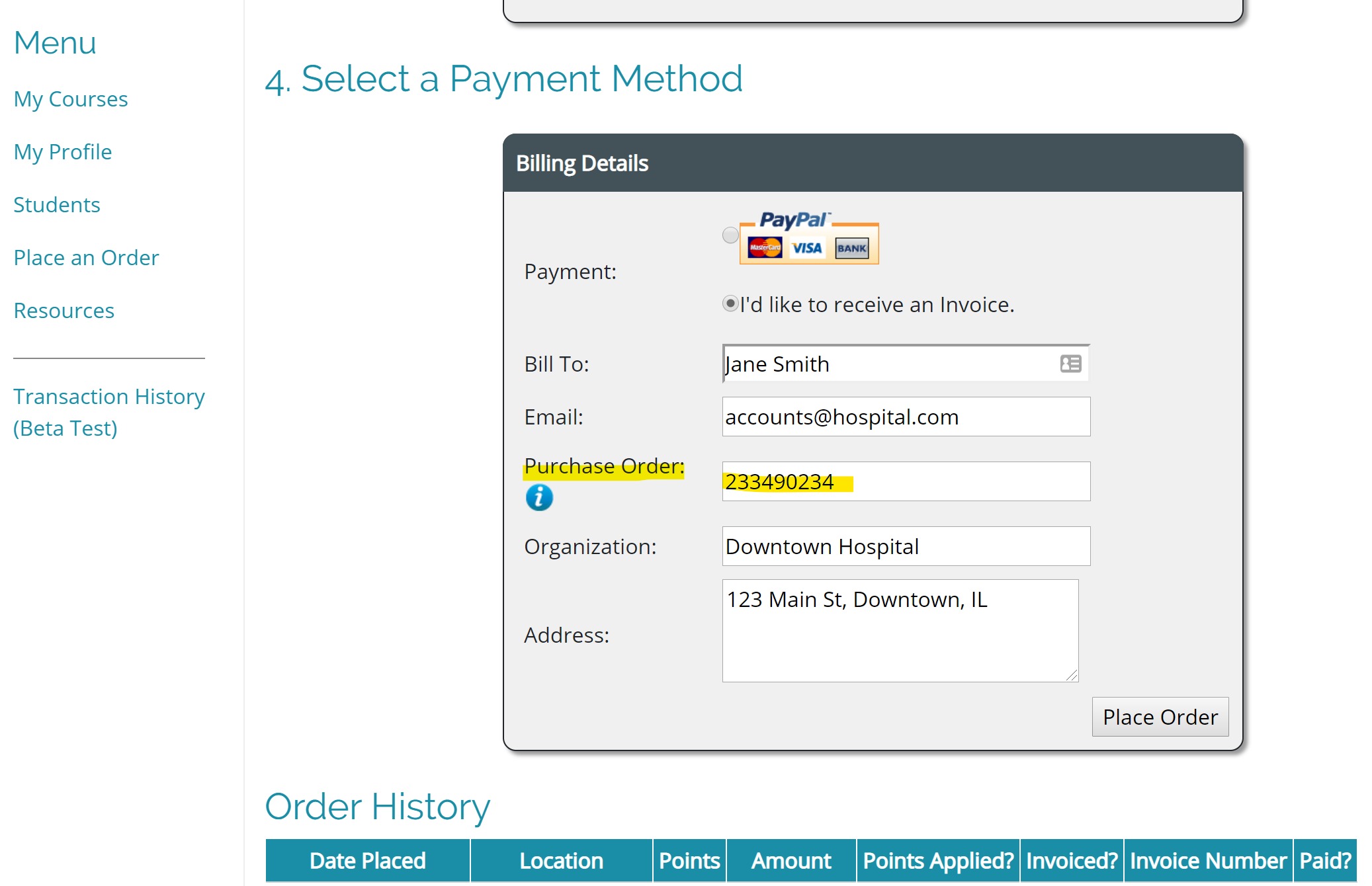 If your organization has Standing Purchase Orders, please email finance@step2education.com to provide the number and the period of validity.