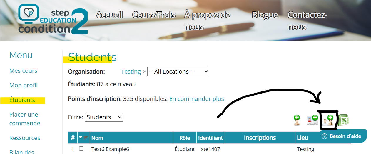 - Dans le menu de gauche, cliquez sur « Étudiants ».
